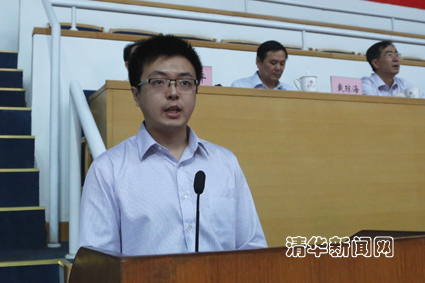 校研究生会主席、汽车系2009级博士生刘博涵代表全体在读研究生和校研究生会向2013级新同学表示欢迎。他与新生分享了研究生要以研究为先,学术研究贵在坚持和坚守,创新灵感来源于交流和质疑等学术感悟。刘博涵说,清华的魅力在于能够赋予你不断挑战和超越自我的激情和勇气,让我们用努力和奋斗,为学术梦想注入勇气与担当,在园子里写下最值得回忆的青春岁月。