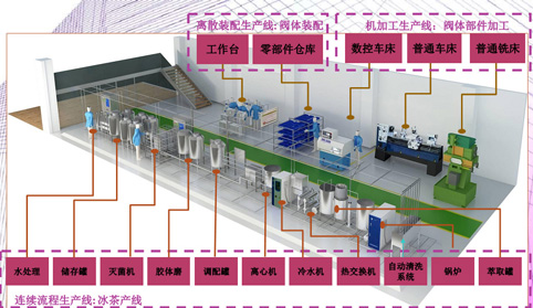 这两条生产线必须能体现出包括劳动密集型和资本密集型的大部分生产线的运营模式,只有这样才能达到教学预期的效果。王晓芳老师讲到:“最终我们共同设计了一条离散的加工装配生产线和一条连续流程的冰茶生产线,前者主要是显现精益运营的理念,而后者则强调了绿色管理。”