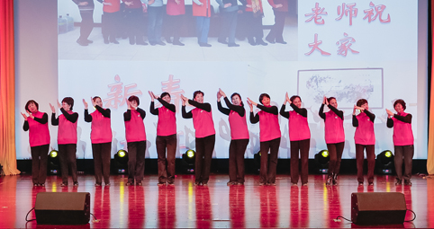 离退休教职工合唱《幸福拍手歌》。