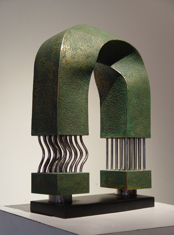 图为董书兵作品《磁力》-锻铜-30x15x45cm-2001年。