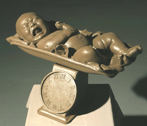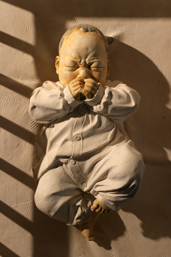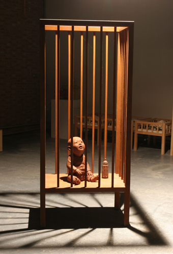 图为董书兵作品《梦语》系列-2-石膏、木-88x66x60cm-2007年。
