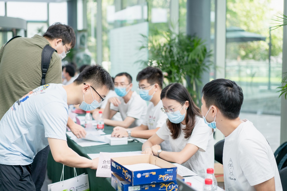 小研志愿者们为新生同学发放各类纪念品