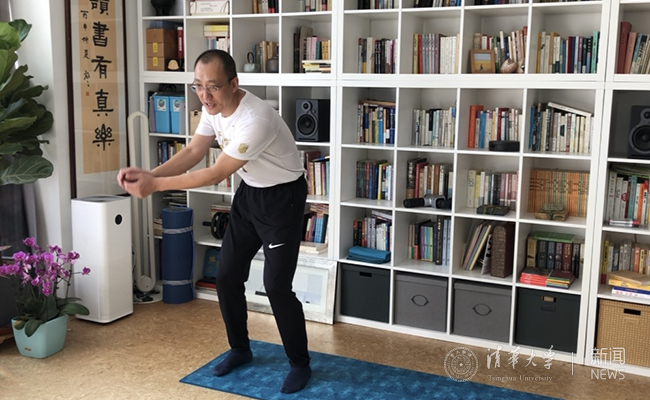 为了准备线上“首秀”,他还特意穿上了“无体育 不清华”的T恤,很多同学在屏幕前看到熟悉的服装都纷纷大呼:“好想回到校园里‘撸铁’!”