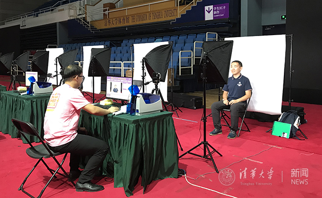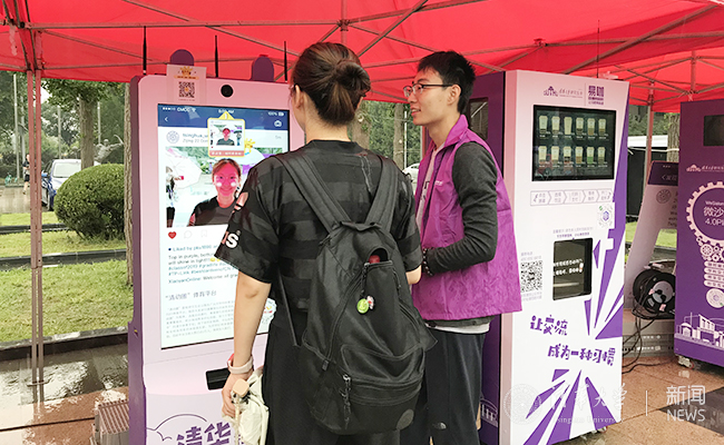 “清华style”大头贴拍照机吸引新生们争相拍照留念