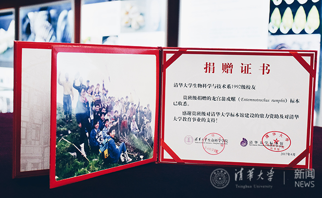 为表达对母校的祝福,生物科学与技术系1992级全体校友向标本馆赠送了珍惜标本——龙宫翁戎螺标本。