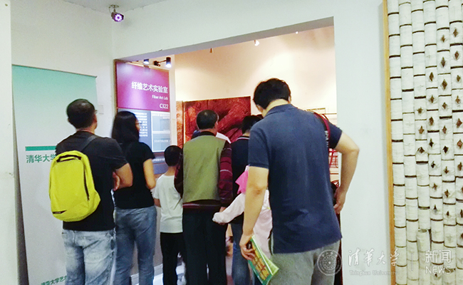 校友们多是携同家人一起来美术实验室体验艺术之美。一位小朋友激动地说:“我以前从来不知道陶瓷居然还能做成这样,简直是太有趣了!”不同实验室的艺术品各具特色,旧材新用的陶器、瓷器,绚丽精巧的金属制品、构思奇特的纤维艺术品……这些艺术品给校友带来了强烈的视觉冲击,和艺术创造的全新体验。